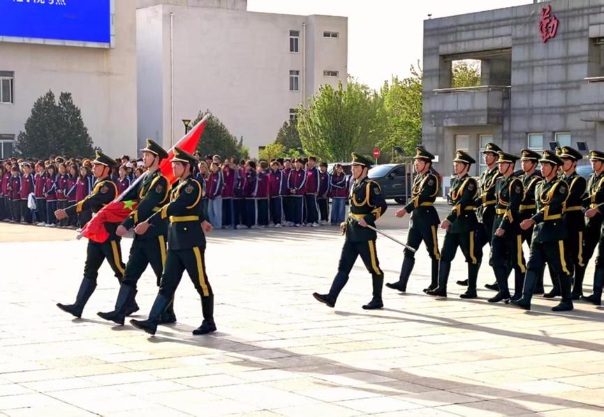 升旗仪式上,全体师生肃立注目,齐唱国歌,五星红旗冉冉升起。现场庄严肃穆,师生在仰望国旗中厚植家国情怀,凝聚奋进力量。