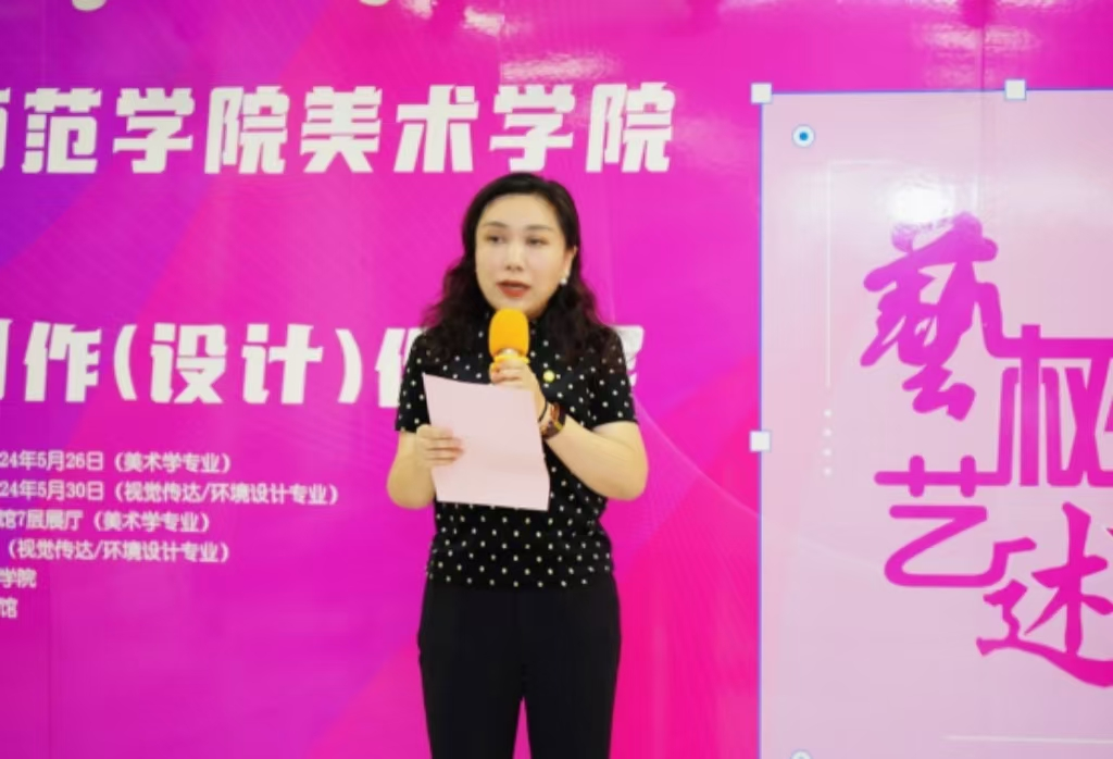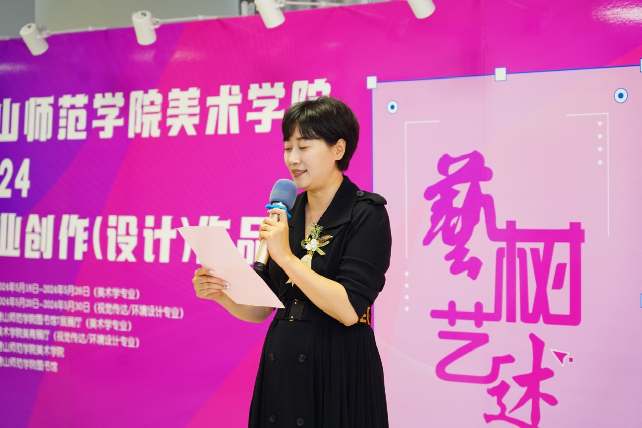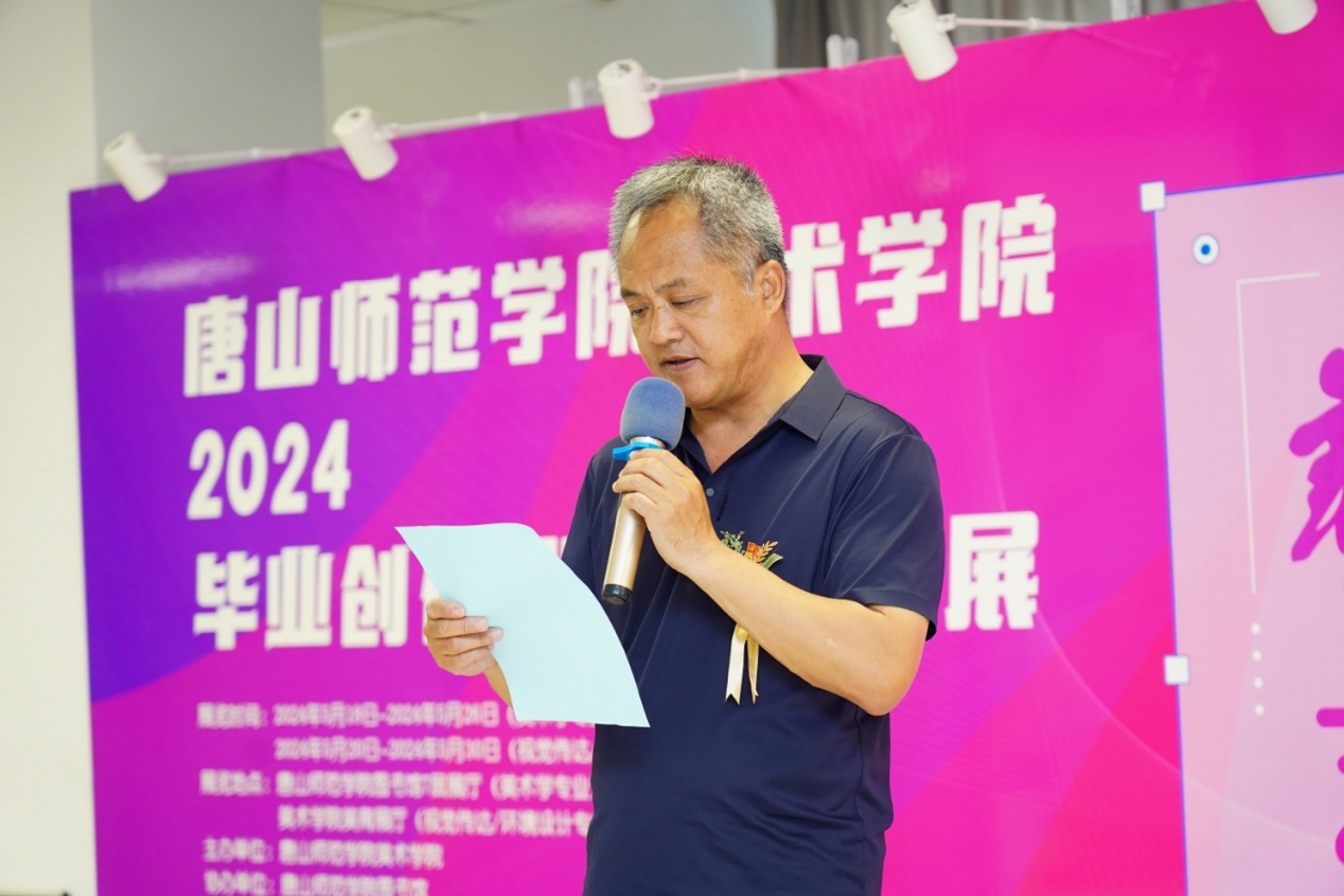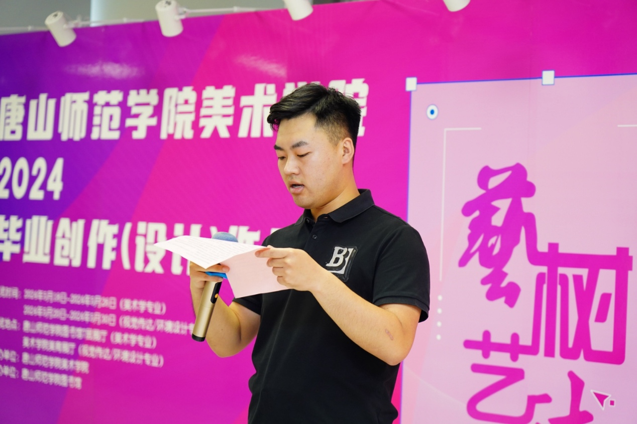 随后,公司党总支书记杨焱上台致辞,他对各位指导老师的辛苦付出表示感谢,对展出的作品给予高度评价。他指出,此次展出的作品质量高、形式多样,具有很强的时代性。他对2024届本科毕业生提出了希望与祝福,相信美院学子未来能在人生道路上谱写绚丽华章。