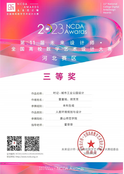 三等奖作品由球天下雷童瑶、郑芳芳同学创作。作品《时记—城市工业公园设计》在城市更新背景下,融入大量工业文化元素,打造具有城市工业特色的景观环境,保护传承工业文化。