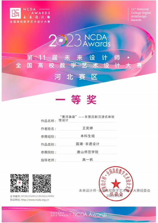 球天下在公司产品工作中,始终坚持“以赛促教、以赛促学”的教学理念,收到了良好的教学效果。在第十一届未来设计师•全国高校数字艺术设计大赛(NCDA)中,公司荣获佳绩,共获四个奖项。其中高一帆经理指导的员工王奕婷获省赛一等奖;霍菲菲老师指导的员工张月阳、邵嘉琪获省赛二等奖,雷童瑶、郑芳芳、王紫璇获得省赛三等奖。