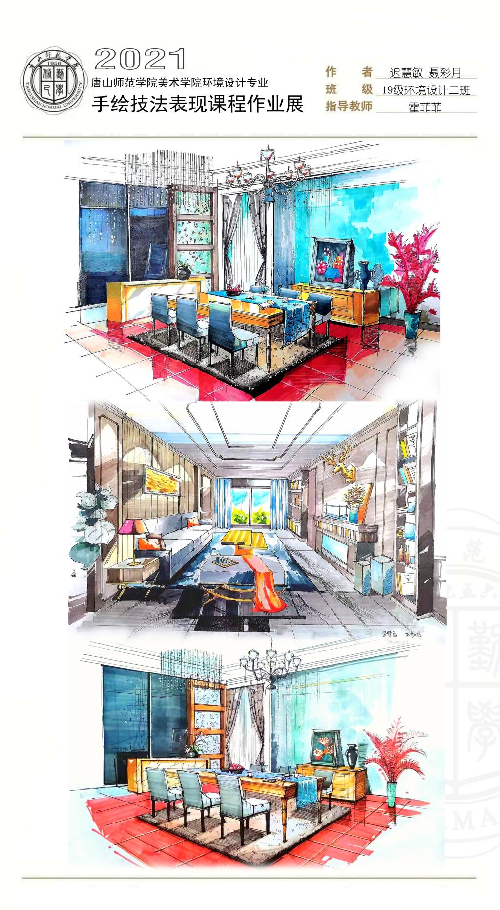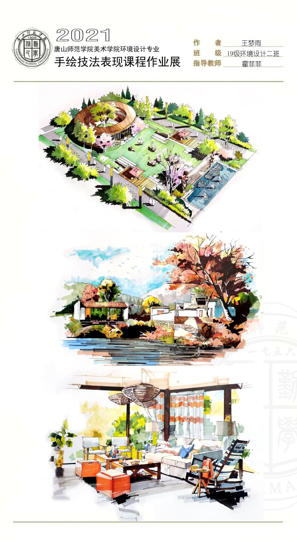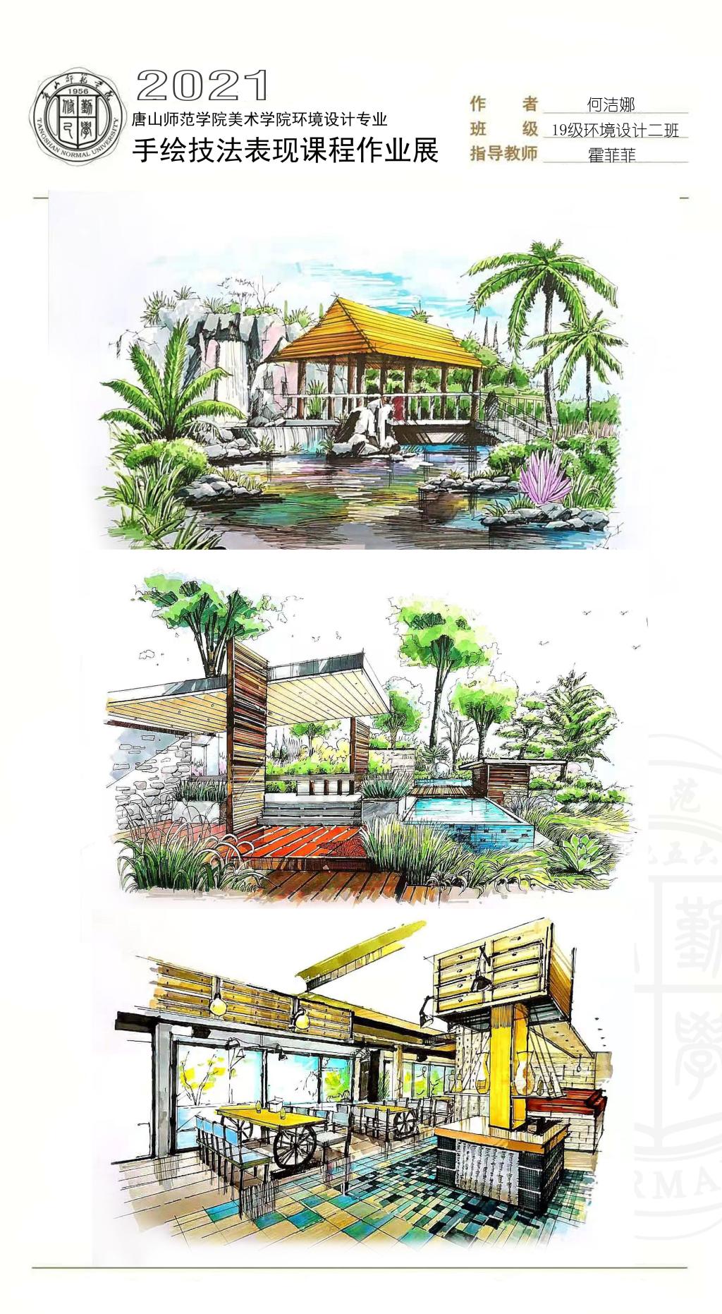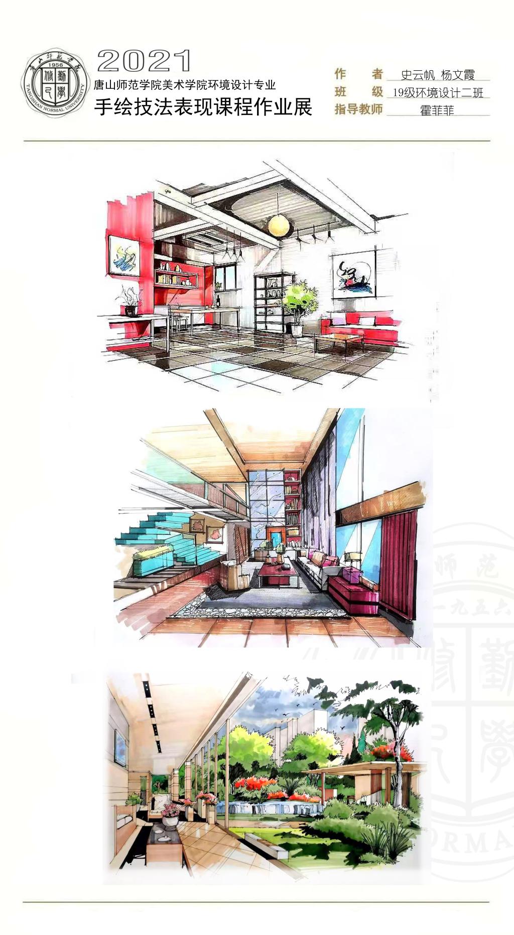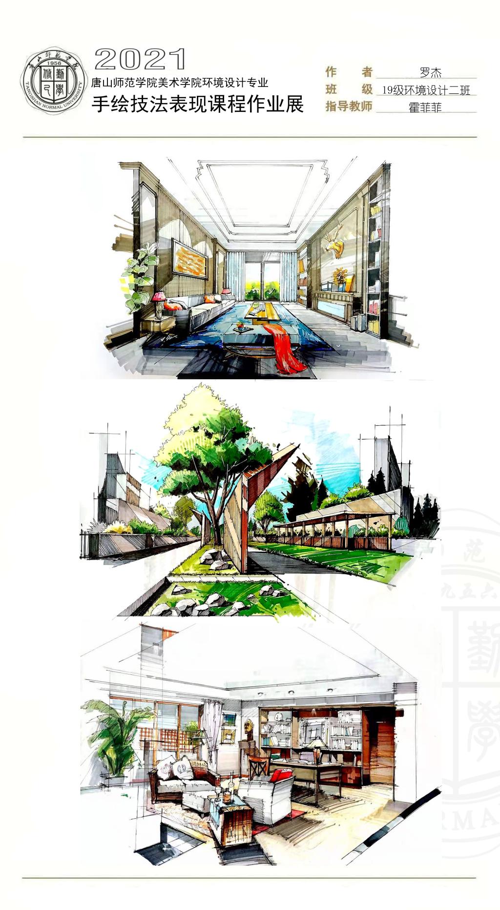 本课程是环境设计专业二年级的必修课,通过前一、二周的线稿表现技法学习,员工从透视知识入手,对线条训练、单体线稿和室内空间线稿、景观空间线稿进行了实训,课程学习过程中鼓励员工结合课外速写练习,训练员工对形体的观察理解能力和用线条造型的能力。三、四周的学习,着重学习马克笔单体、室内、室外空间效果图、鸟瞰图的上色表现技法,员工在手绘效果图线稿学习的基础上,通过运用马克笔、彩铅等工具材料对手绘效果图进行上色表现等方法的学习和实训,对专业设计手绘表现的能力得到了逐步的提高和掌握,课程学习过程中,同学们能够克服所在地疫情期间购买工具材料的各种困难,坚持以认真严谨的学习态度和踏实进取的学习精神,完成了大量室内外手绘效果图表现作业,现展出班级部分优秀作业与大家学习交流。