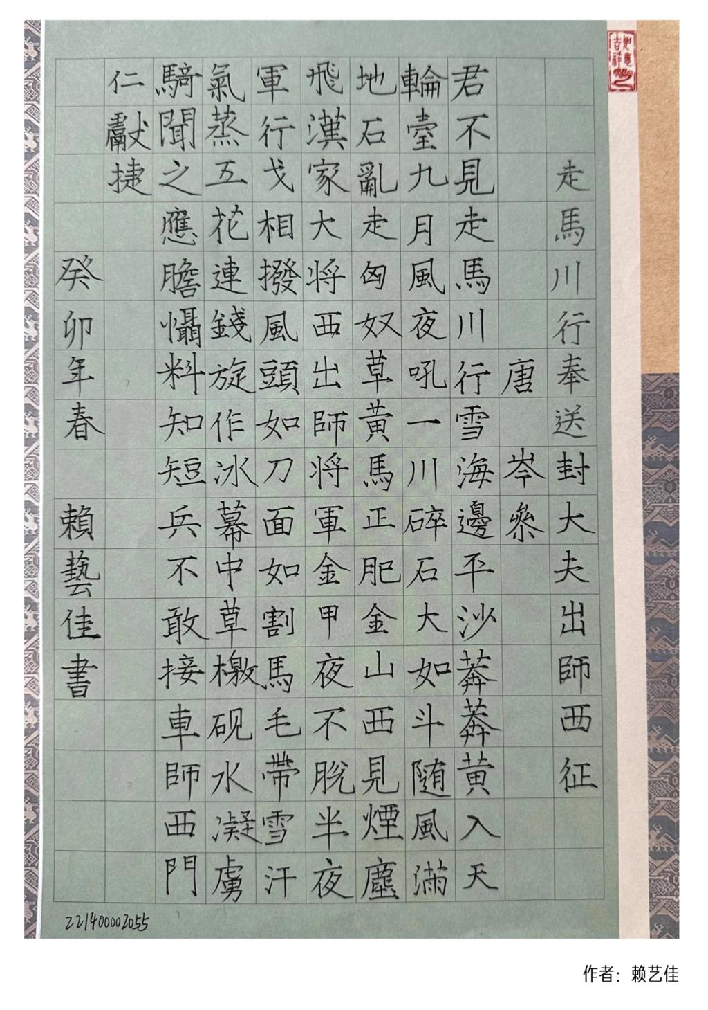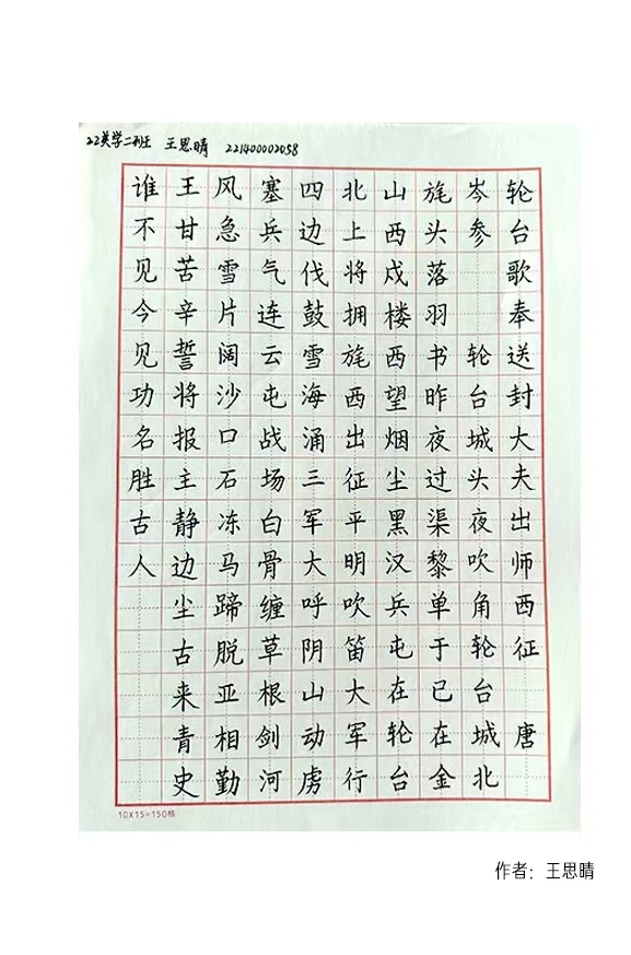 以下为员工在古诗词规范字书写中的部分成果展示: