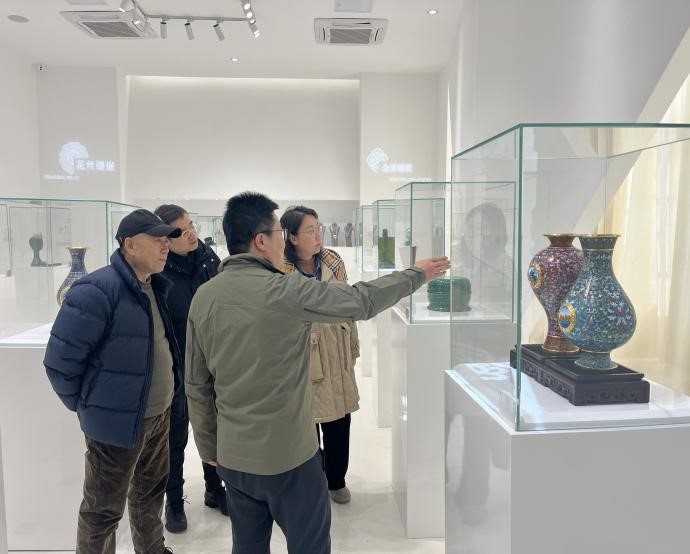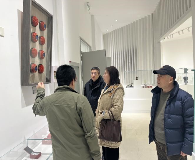 在北京市工艺美术高级技工公司曹职分校的工艺美术展厅,调研团队沉浸式体验了非遗艺术教学成果。玉雕、漆雕、景泰蓝等非遗作品构成的视觉盛宴,引发美院教师频频驻足拍摄。北工美王牧原主任现场揭秘人才培养模式:“我们的员工从大二就开始参与大师工作室项目,毕业时可带着作品集和行业认证双证闯市场。”