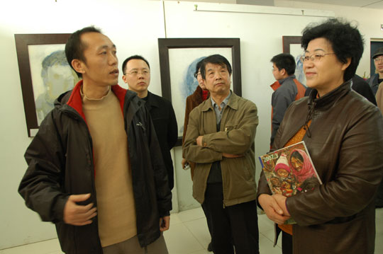 市政协副主席卢晓霞女士与参展的齐彦鹏教师亲切交谈