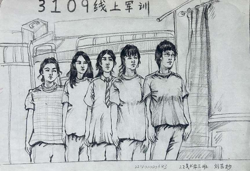 征集活动开始后,11个班级296名同学,在紧张繁忙的学习生活之余,借助手中的画笔把线上军训的训练状态以及初入公司的所见、所闻、所想,加以艺术化的加工、构思、创作,最终形成了一幅幅形神兼备、意蕴丰满的绘画作品。