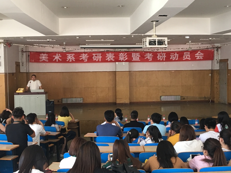 本次大会于下午3点正式开始,首先,由张高志主任做考研动员,他说:目前随着各高校扩招以来,本科生越来越多,就业形势也越来越严峻,考研意味着你可以接受更高的教育,可以有更高的学位,就业发展空间会更大,一定要珍惜美好年华,立足实践,积极争取深造机会。同时还给大家介绍了目前的考研状况,让各位同学客观的认识到目前自己所处的位置。之后,李爱民老师也用自己的亲生经历给大家现身说教,三位考上研究生的同学分享了自己考研经历。最后张高志主任为考上研究生的同学颁发美术系纪念品。