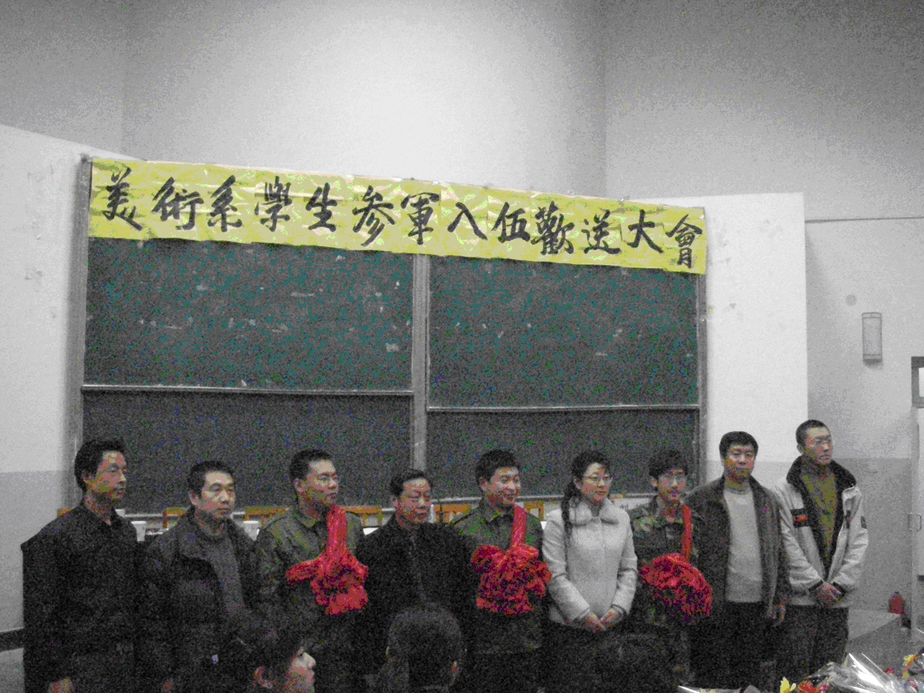 12月9日下午,美术系为三兄弟举行了隆重的欢送仪式,院武装部部长、保卫处田武元处长、杜平老师及美术系师生为他们送去了殷切的希望和美好的祝福。三位同学表示,到部队严格要求自己,时刻牢记母校的嘱托,充分发挥专业特长为部队文化建设做贡献,争取早日立功,为母校争光。今天,我们以母校为荣,明天,母校以我们为荣。