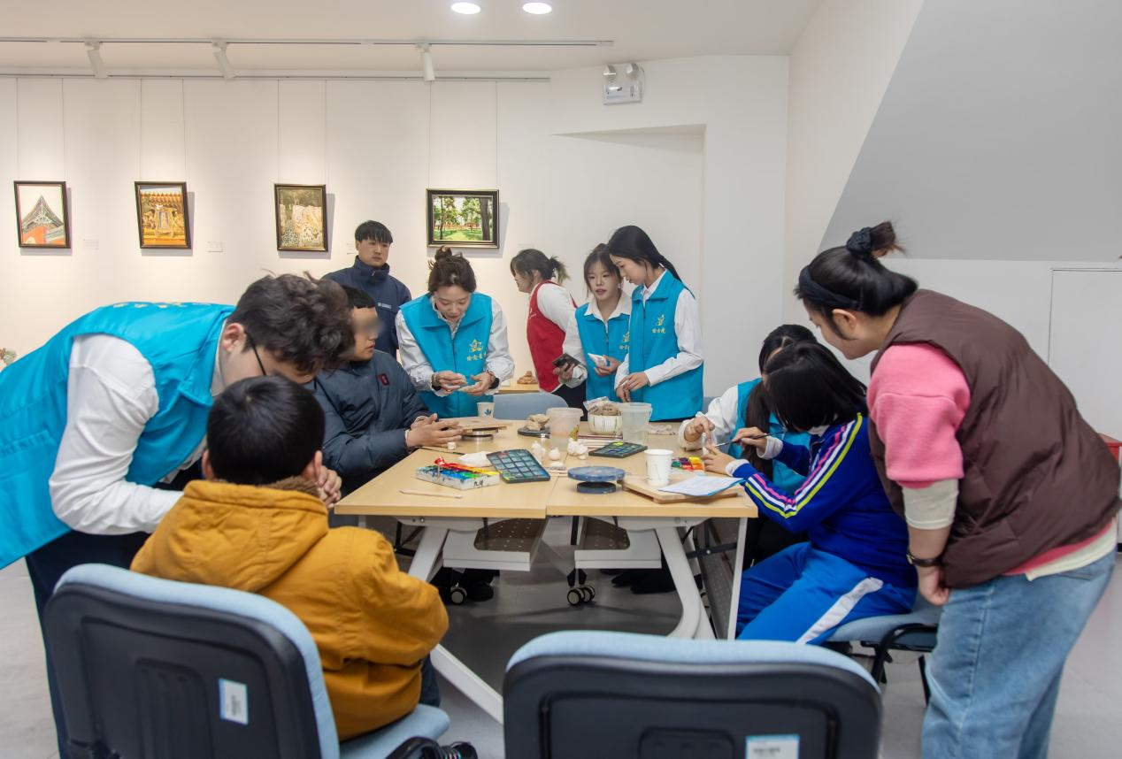 揭牌仪式后,绘画疗愈团队成员与心智障碍者携手体验雕塑制作,用陶土与色彩搭建起情感联结的桥梁。