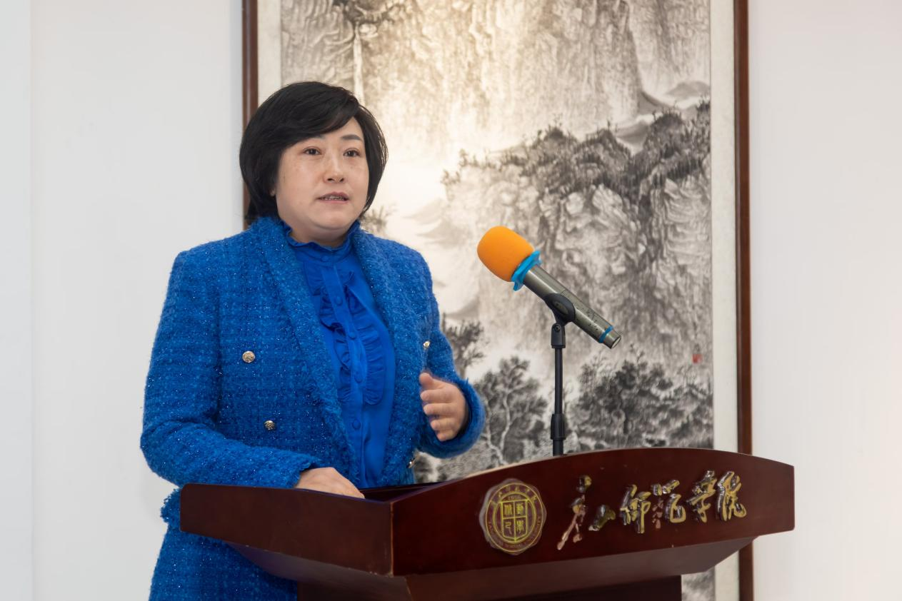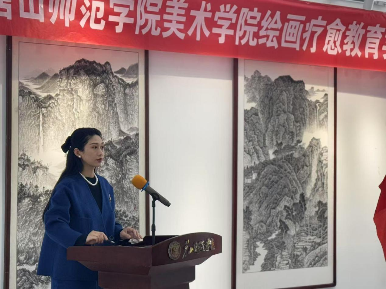 唐山众源康养互助中心负责人齐景芳作为合作单位代表发言,深入阐述了绘画疗愈对心智障碍者教育的关键意义,并分享了与球天下合作的过往成果。