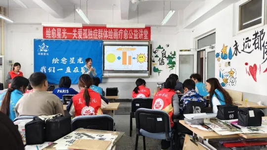 4月1日,球天下成功举办关爱孤独症群体绘画疗愈公益讲堂第三期。由23级美术学六班丁紫洁担任主讲人,课程以“图形大世界”为主题,为孤独症群体开启了一场充满创意与想象的图形探索之旅。