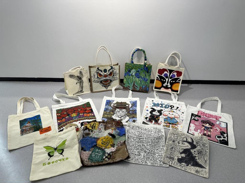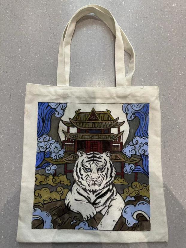 同学们踊跃报名,认真准备,提交的作品种类多样,主题鲜明。通过丙烯画、国画等绘画方式,发挥自己的创意,将自己的想法展示得淋漓尽致,每一幅设计作品都蕴含着同学们的想象力与创造力。 一支笔、一个调色板,再加上一点创意,普通的帆布包变成了一件件精美的艺术品。