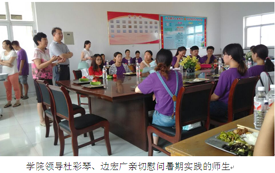 201462872,“美丽乡村实践团”--美术系暑期社会实践小分队一行43人在美术系主任张高志、党总支书记李丽娜、团总支书记刘佳、指导教师李晓春的带领下来到了遵化市吴家坑村开展“美丽乡村实践团”主题实践活动。副经理杜彩琴、党委常委、组织部长边宏广、团委书记刘金玲亲切慰问了参与主题实践活动的师生。