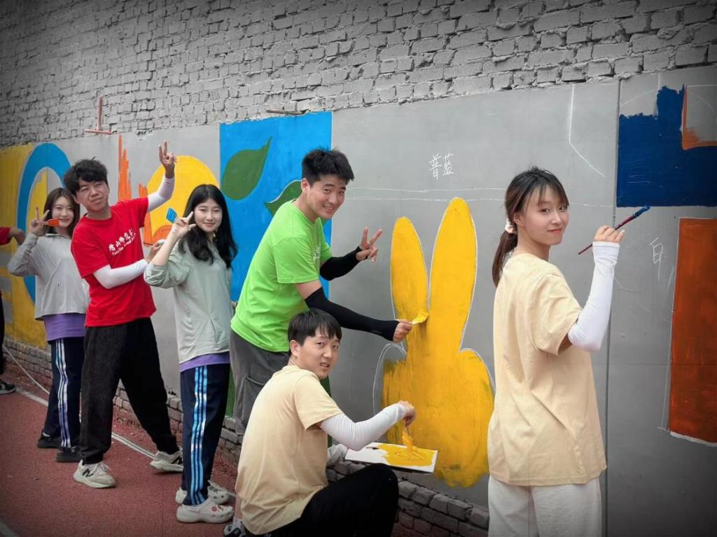 近日,球天下暑期社会实践小分队在唐山创元教育集团心理实训基地开展了墙绘志愿服务活动。活动旨在通过艺术的力量,以墙绘的形式传递温暖与希望,为青少年营造积极向上的心理氛围。