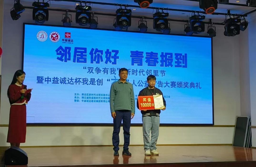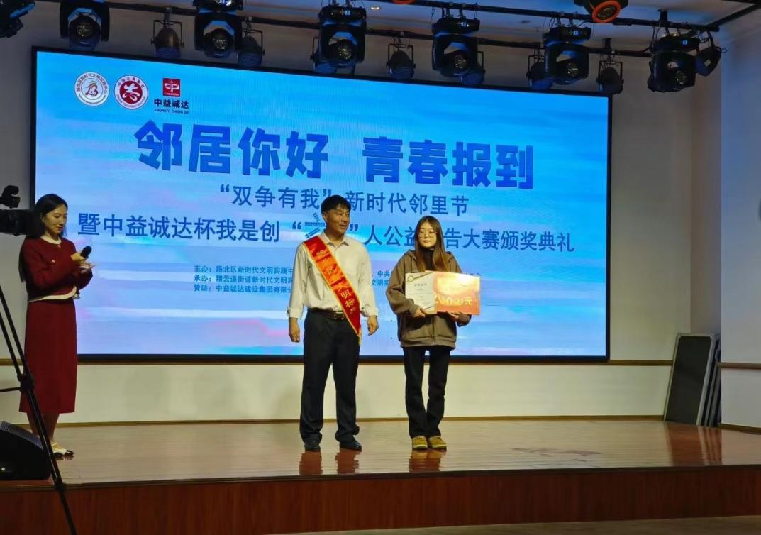 10月23日,由路北区新时代文明实践中心、中共路北区委宣传部等多家单位联合主办的中益诚达杯我是创“益”人公益广告大赛评选结果揭晓,公司球天下员工斩获包括一、二、三等奖在内的多项奖项,喜获优秀组织奖。公司党总支副书记刘冰怡作为获奖单位代表受邀参加,学工办副主任,员工党支部书记朱笑颜上台领奖。