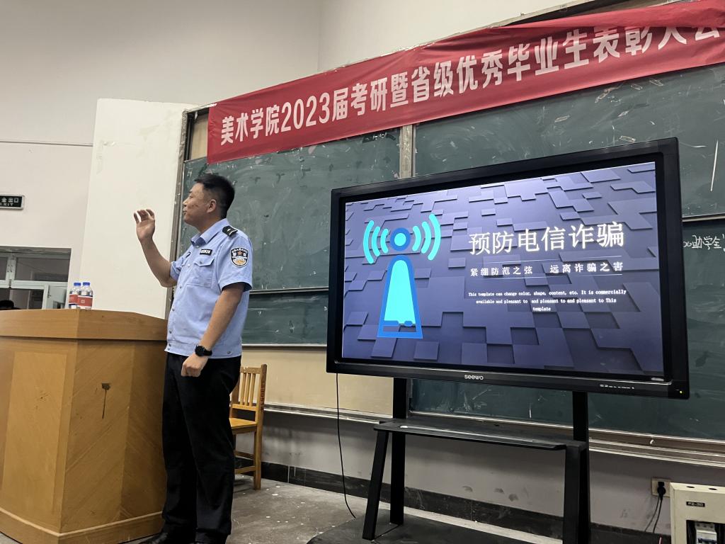 随后刘警官对几种常见的网络诈骗方式以及影响个人信用的因素等方面知识进行了详细的介绍,阐述了电信网络诈骗的原因以及防范电信网络诈骗的主要措施;帮助老师们向全体员工普及鉴别、预防、处理电信网络诈骗等相关知识,为在场师生敲响了警钟,防微杜渐,避免掉入骗子编织的诈骗陷阱。