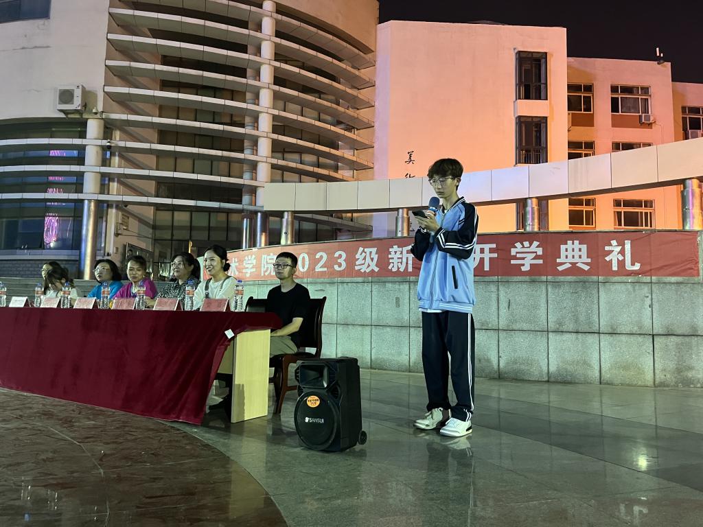 2023级美术学一班史博文同学作为新生代表发言。他分享了成长之路的酸甜苦辣,号召同学们在今后的求学之路上要有孜孜不倦的努力,要踏踏实实从每一步做起,用青春来诠释曾经的誓言,用汗水来锻造明日的辉煌。