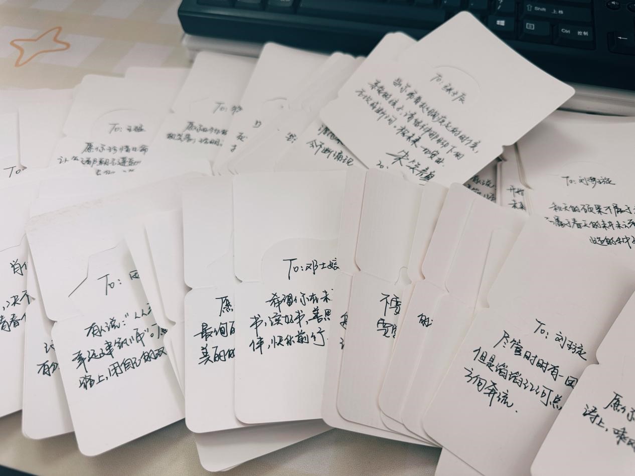 19级视觉传达三班的李沛东收到贺卡之后十分感动,他说:“因为笑颜老师带7个毕业班,加起来大约205人,每位同学的贺卡都是笑颜老师一笔一画亲自写下的。”在李沛东看来,朱笑颜是他们的辅导员,但很多时候更像一位大姐姐,她平日里跟员工交流都十分密切,对于员工日常生活动态也十分上心。“我们私下对邓老师的称呼都是笑颜姐,好幸运最后一年遇到了她,大学四年也圆满的画上了句号在我们心里,笑颜姐已经不仅仅是我们的辅导员与老师了。”李沛东说。