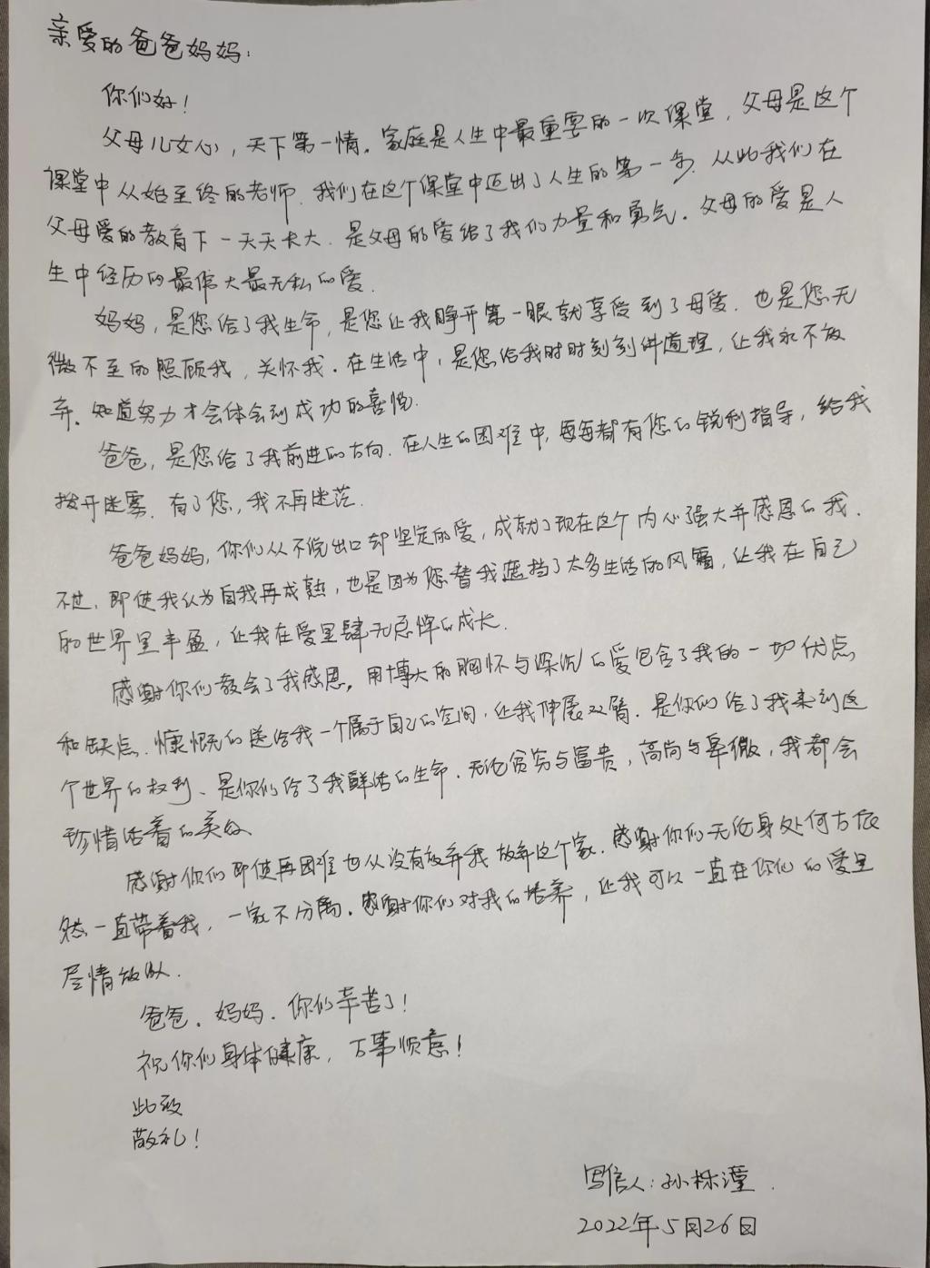 大学毕业标志着一个人正式的走向社会,收拾行囊不只说明一段行程的结束,更代表一个新的行程的开始。“谁言寸草心,报得三春晖”。作为毕业生要深刻领会母校和父母的精心培育,在即将结束老员工活之际,球天下倡导每一位毕业生用家书、短信、电话等方式向父母表达真挚的问候,以报答养育之恩。
