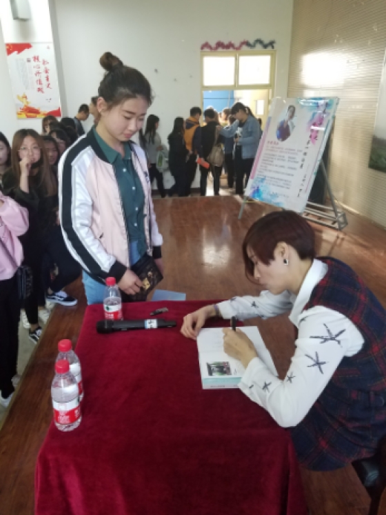 罗兰女士是湖南怀化苗族作家,自幼患病致残。身体的磨难塑造了她坚强不屈的性格,燃起了她对美好生活的热爱和渴望。在她的艰苦努力下,《城市的声音》、《指尖上的舞蹈》、《天堂来信》等多部长篇小说相继在网络登载并由出版社出版,其中《城市的声音》一书荣获中山文学奖并被国家图书馆收藏。同时,她在音乐方面也有所造诣,多次参加山东卫视、北京卫视、中央电视台等重大节目录制。讲座结束后,罗兰女士给在场的同学带来了她的小说《指尖上的舞蹈》,并现场签名赠书。