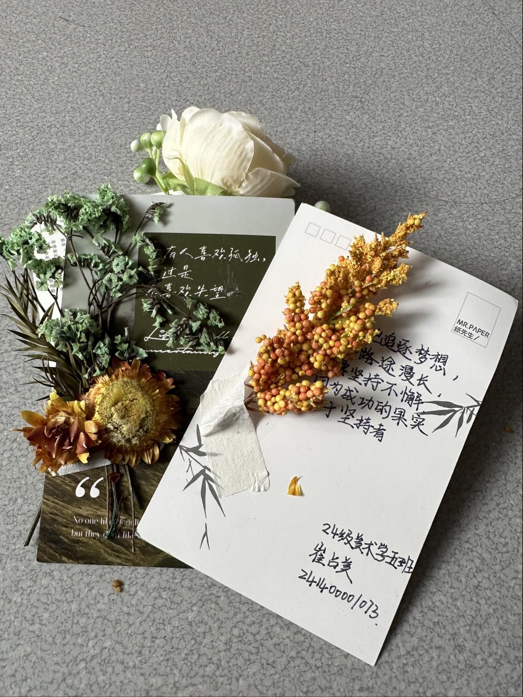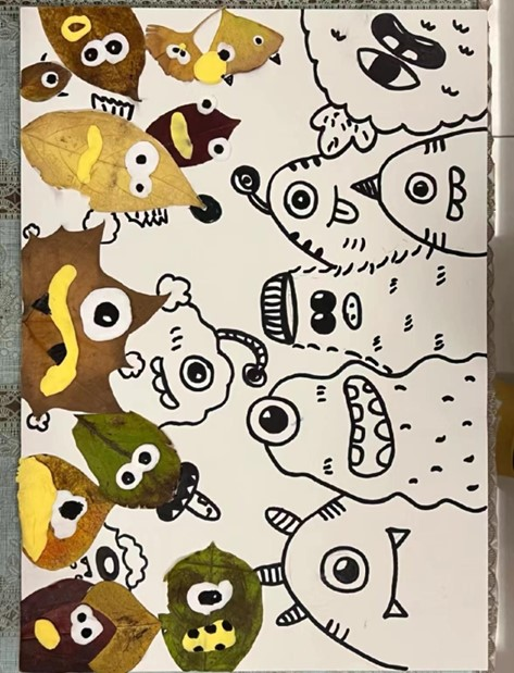 看,这边的同学将一片片普通的落叶精心制作成了精美的书签。那细腻的图案,或描绘着秋天的美景,或展现着心中的梦想;一句句励志的话语,如同一束束温暖的阳光,照亮了前行的道路,而那边,同学们充分发挥想象力,巧妙地利用落叶的形状和颜色,创作出了一幅幅富有创意的美术作品。有的作品宛如一幅绚丽的秋景画卷,让人仿佛置身于秋天的童话世界;有的作品则充满了抽象的艺术感,引发人们对秋天的无尽遐想。在他们的精心雕琢下,一片片平凡的落叶焕发出了新的生命,变成了一件件令人赞叹的艺术瑰宝。